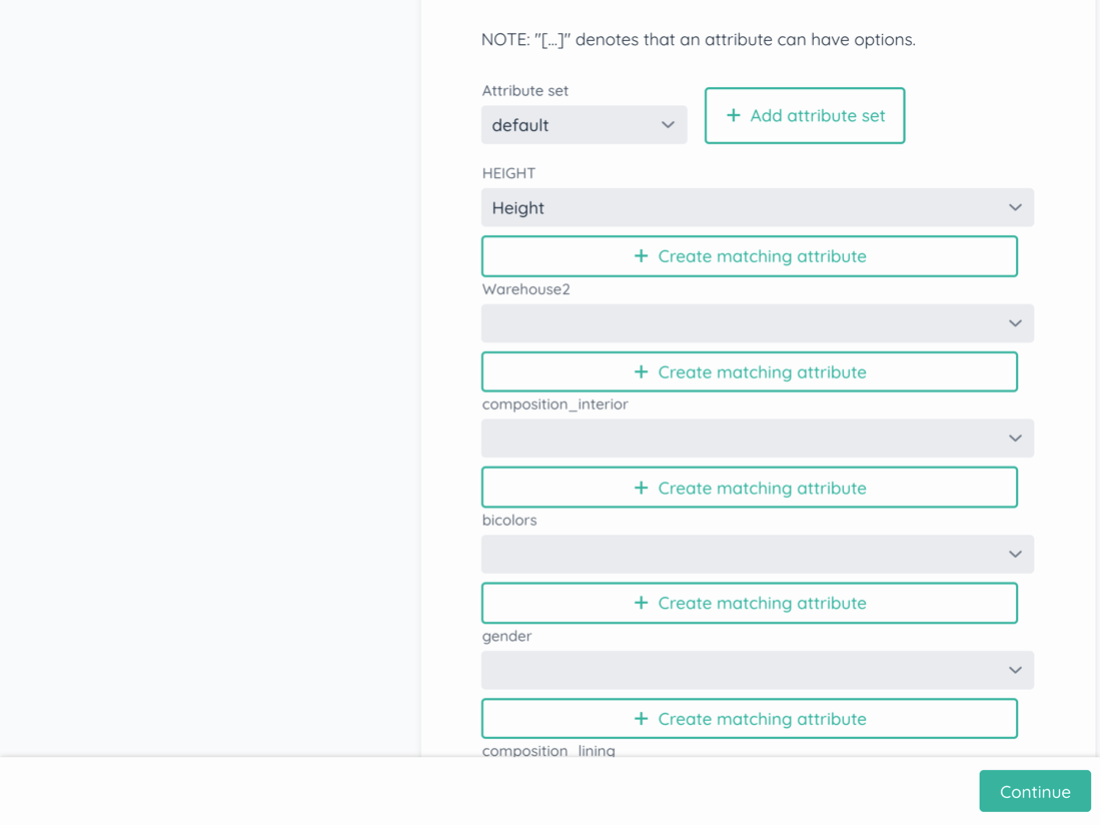 In this step you can define how to configure the attributes of the supplier's products with the attributes you have configured on your Magento 2 site.