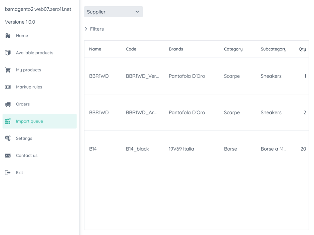 In this section you can see the list of products queued to be imported into your Magento store.