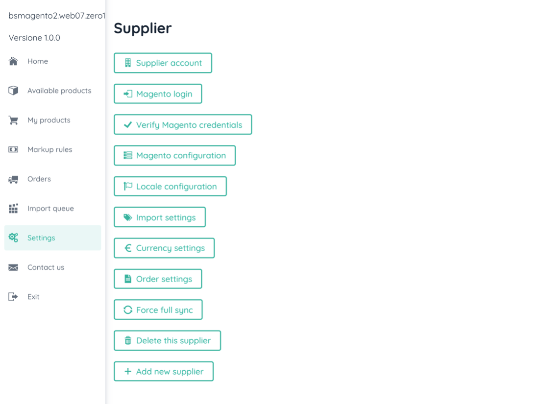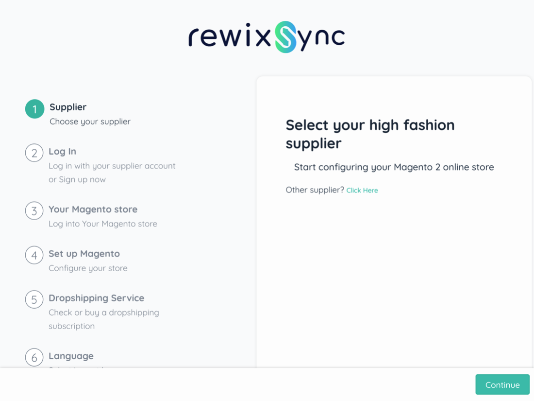 In this step you can select the Supplier with which to connect your Magento 2 site.