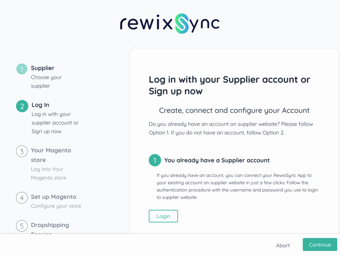 If you do not have an account on your supplier's website, you need to register on the site before proceeding. After signing up and confirming your e-mail address, you can repeat the wizard.