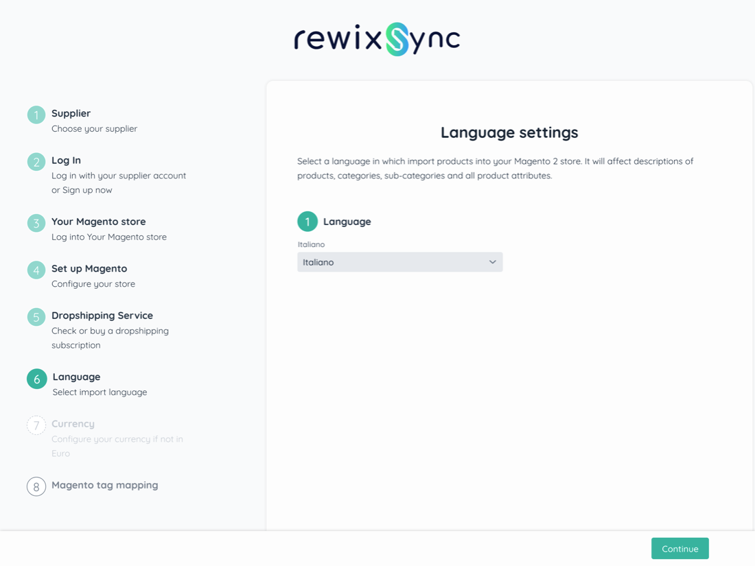 Warning: RewixSync does not support multilingual sites. In this phase you must then choose which language to import your products.